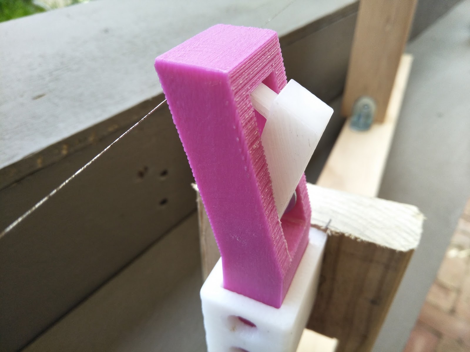 Full disclosure though, it sucked. The whole thing sucked. The jack would wobble back and forth in the register, the plectrum was too rigid to pluck the string and instead just pushed up against it and also the tension of the string was making the entire assembly buckle, but that's hardly surprising when you look at how the wooden parts were assembled. However, when the plectrum contacted the string exactly right, it would pluck the string. It sent the jack flying upwards and out of the register but it plucked the string! Which made a noise!